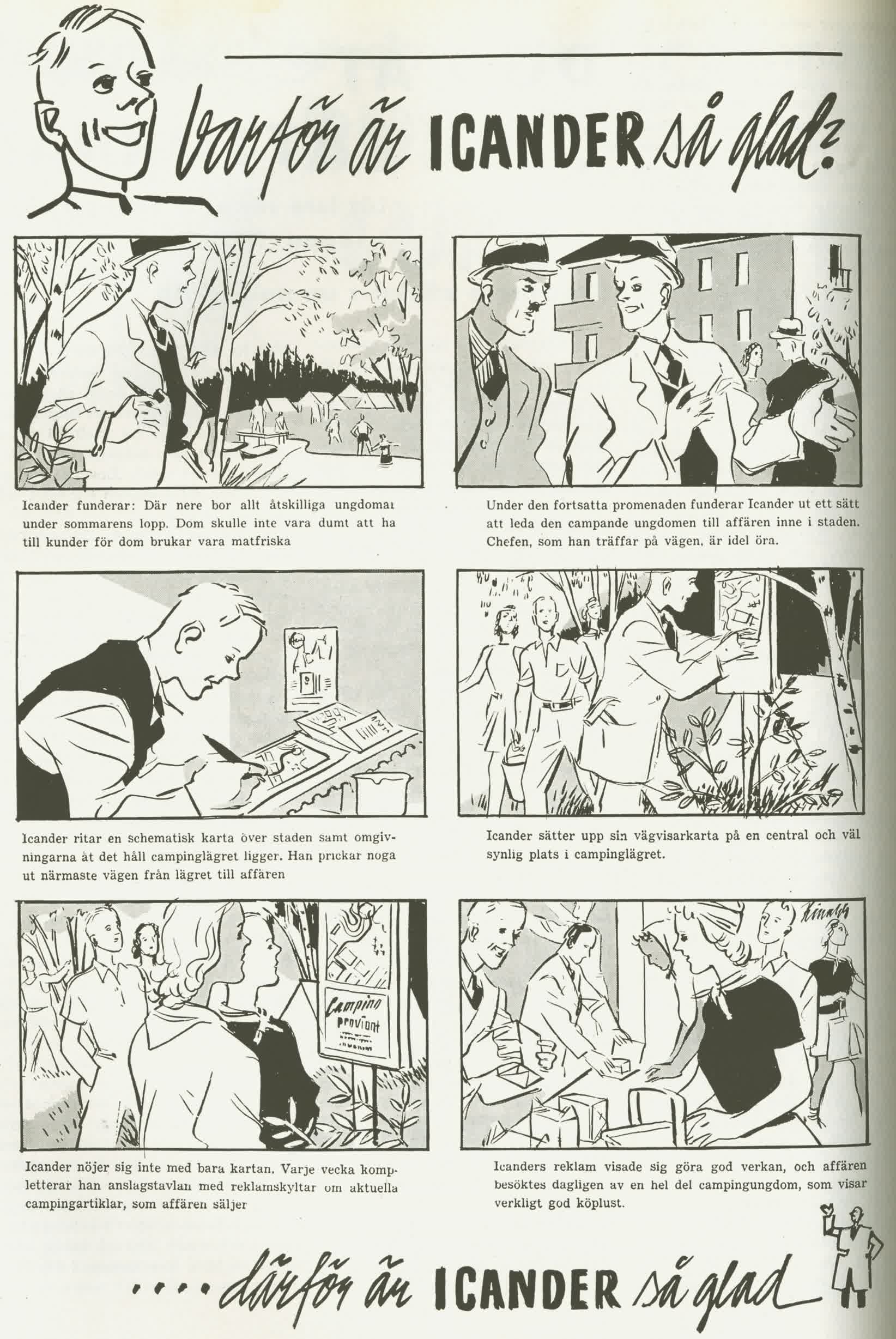 – Icander spelade en viktig roll i att mjuka upp och ge identitet till säljmaterial i butik och i veckoannonser och flygblad, säger Roland Fahlin, tidigare vd på ICA, som beskriver Icander som den första karaktären att symbolisera ICAhandlaren.